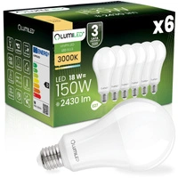 6x LED žiarovka E27 A70 18W = 150W 2430lm 3000K teplá biela 260° LUMILED