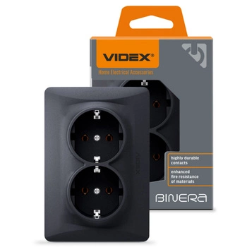 Kontakt 16A dvojitá zásuvka pod omietku čierna BINERA VIDEX
