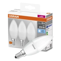 3x LED žiarovka B37 sviečka E14 4,9W = 40W 470lm 4000K neutrálna biela 180° BASE Osram
