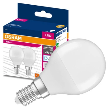 Dočasne nedostupné2x LED žiarovka P45 guľka E14 4,9W = 40W 470lm 6500K studená biela 200° VALUE CLASSIC Osram