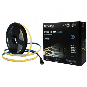 LED pásik COB 7W/m 630lm/m 320LED/m 24V 6000K, studená biela IP20 Roll 5m + napájací zdroj + diaľkové ovládanie Ecolight
