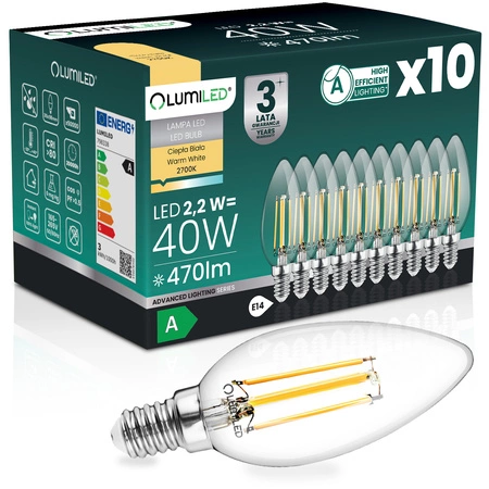Sada 10 LED žiaroviek B35 v energetickej triede A od spoločnosti Lumiled je voľbou pre tých, ktorí očakávajú najvyššiu účinnosť. Trieda A predstavuje absolútnu špičku v technológii LED - svetelný zdroj spotrebuje extrémne málo energie a zároveň ponúka plný svetelný tok 470 lm, čo zodpovedá klasickej 40W žiarovke. Rozdiel je cítiť už pri prvom použití: silné, rovnomerné svetlo s minimálnou spotrebou energie znamená reálne nižšie účty a uvedomelé využívanie osvetlenia. Teplá farba 2700 K vytvára príjemnú atmosféru, zatiaľ čo tvar vlákna žiarovky a 360° uhol osvetlenia napĺňajú priestor elegantnou, harmonickou žiarou. Kombinácia štýlu, úspornosti a kvality, ktorá v tejto energetickej triede jednoducho znamená rozdiel.