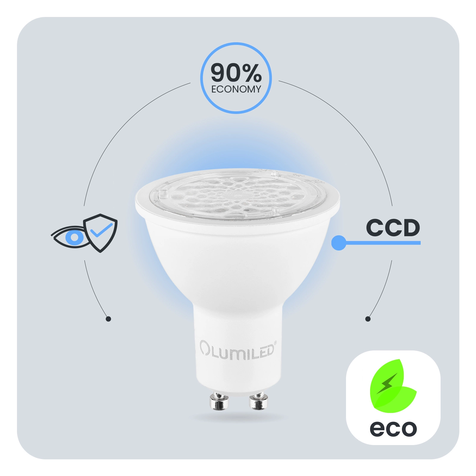 Žiarovky LUMILED boli navrhnuté s ohľadom na používateľa. Nekvalitné osvetlenie môže viesť k únave očí, preto sú naše žiarovky vybavené funkciou Eye Safe, ktorá poskytuje pohodlné a šetrné osvetlenie pre vaše oči v akejkoľvek miestnosti bez toho, aby sa znížila pracovná účinnosť. Takisto nevyžaruje škodlivé UV ani IR (infračervené) žiarenie.