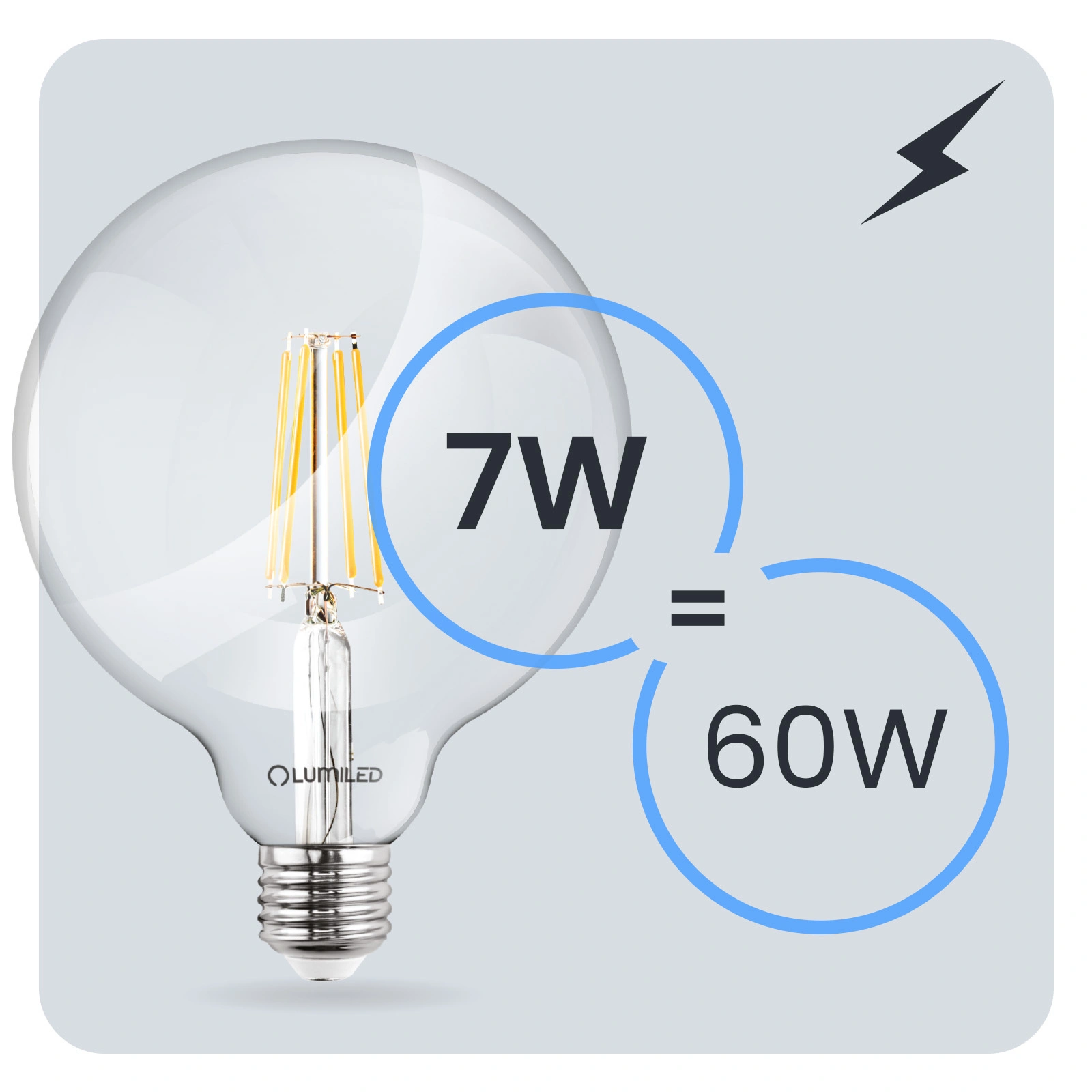 Táto sada 3x LED žiarovka LUMILED s päticou E27 v tvare veľkej gule G125 a výkonom 7 W je štýlovou, energeticky úspornou náhradou za tradičné 60W žiarovky. Ponúka jas 806 lm a teplú farbu 3000 K, čím vytvára príjemné, atmosférické svetlo ideálne do obývačky, jedálne alebo spálne. Uhol vyžarovania 360° zabezpečuje rovnomerné rozptýlenie svetla v celej miestnosti, čím sa zvyšuje komfort každodenného používania. Dekoratívny tvar veľkej gule G125 robí zo žiarovky aj estetický dizajnový prvok, ktorý je viditeľný aj po vypnutí svetla. Je vynikajúcou voľbou pre tých, ktorí chcú spojiť estetiku, funkčnosť a úsporu energie.