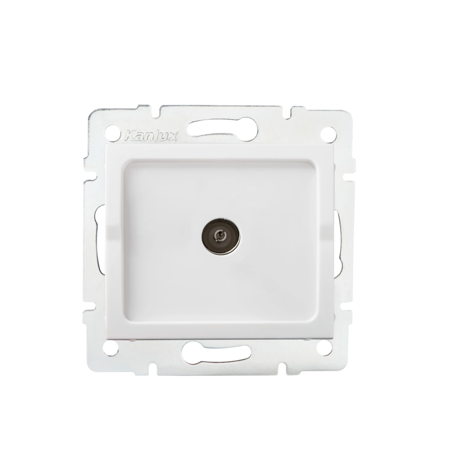 Objavte spoľahlivosť a štýl s koncovou zásuvkou koaxiálnej televíznej antény od spoločnosti Kanlux. Model série LOGI je ideálnym riešením pre každý interiér, ktorý vyžaduje bezpečnú a estetickú inštaláciu. Vyznačuje sa štvorcovým tvarom a moderným dizajnom a jeho klasická biela farba dokonale zapadne do každého prostredia. Zásuvka je vyrobená z odolného materiálu akrylonitril-butadién-styrén (ABS), ktorý zaručuje jej dlhodobú životnosť. Použitie technológie zapustenej montáže nielenže uľahčuje inštaláciu, ale tiež zabezpečuje, že zásuvka dokonale splynie so stenou.