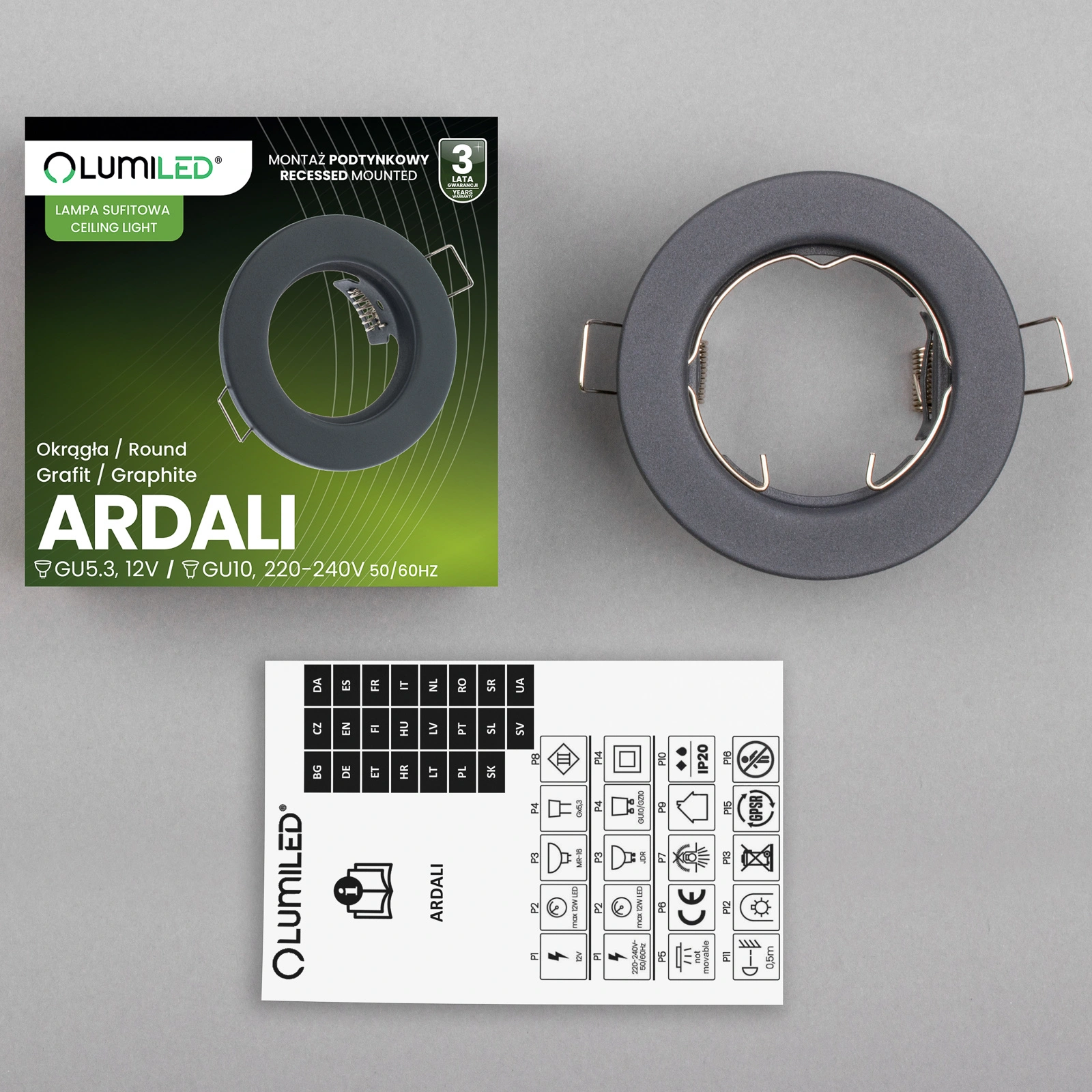 Okrągła Oprawa Halogenowa ruchoma w kolorze czarnym o strukturze proszkowanej marki Lumiled, została wykonana z wysokiej jakości stali. Oprawa została przystosowana do montażu podtynkowego, w połączeniu z dobrą żarówką LED może służyć do podświetlenia dekoracyjnego, jak i do oświetlenia ogólnego w większych otwartych pomieszczeniach, gdzie zastosowanie pojedynczego źródła światła okazuje się niewystarczające, a dzięki swojemu nowoczesnemu wyglądowi swoje zastosowanie znajdzie w każdych nowocześnie urządzonych mieszkaniach, domach czy też eleganckich biurach.