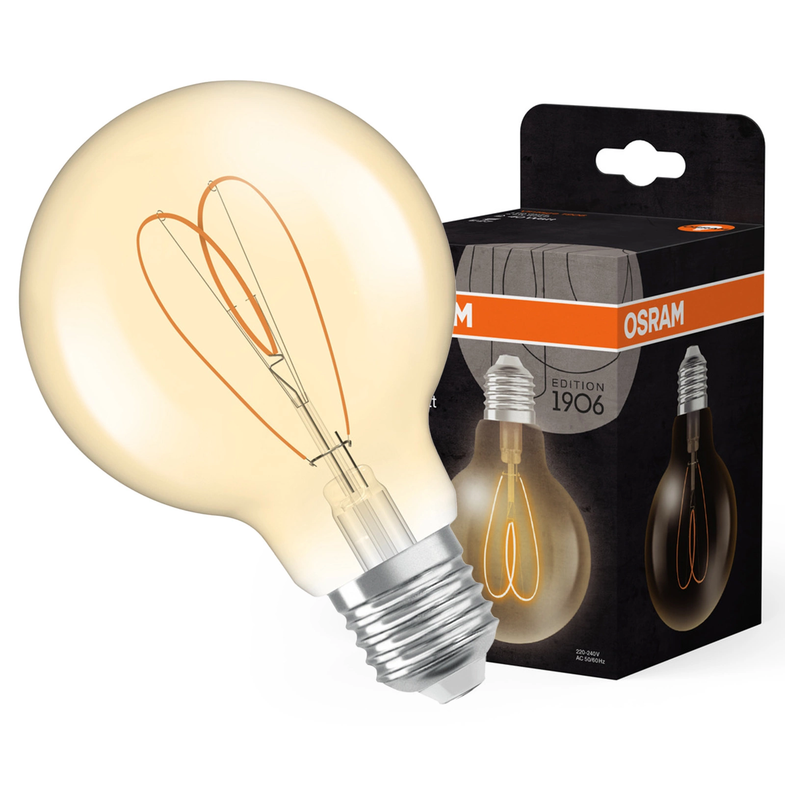 Dekoratívna LED žiarovka G80 E27 4,9W = 40W 470lm 2200K teplá biela CRI90 300° jantárová stmievateľná Vintage 1906 Osram