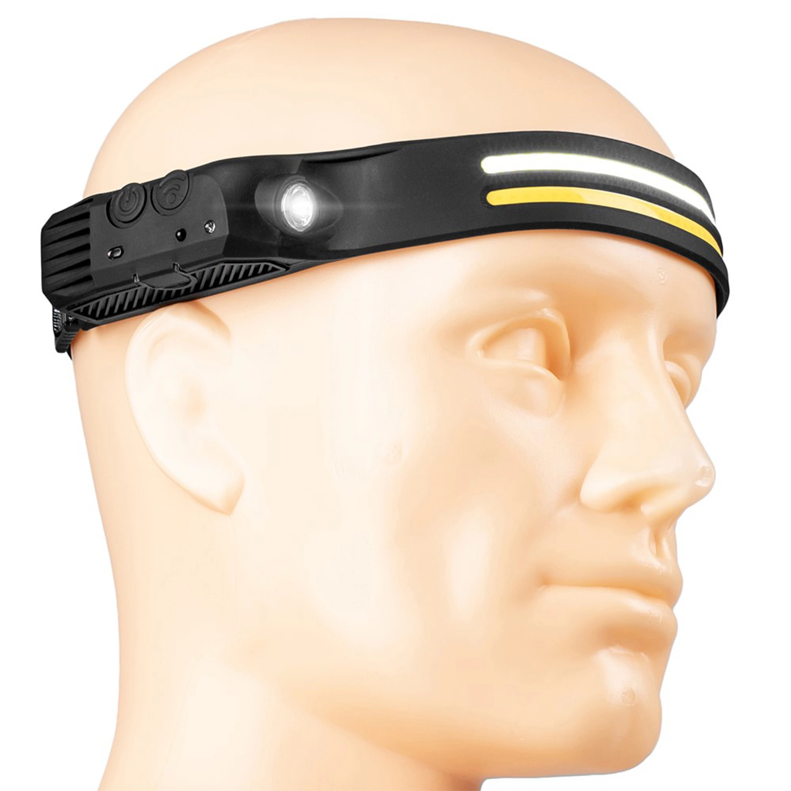 Elastyczna opaska latarki posiada szeroką regulację, dzięki czemu można ją idealnie dopasować do każdej głowy.