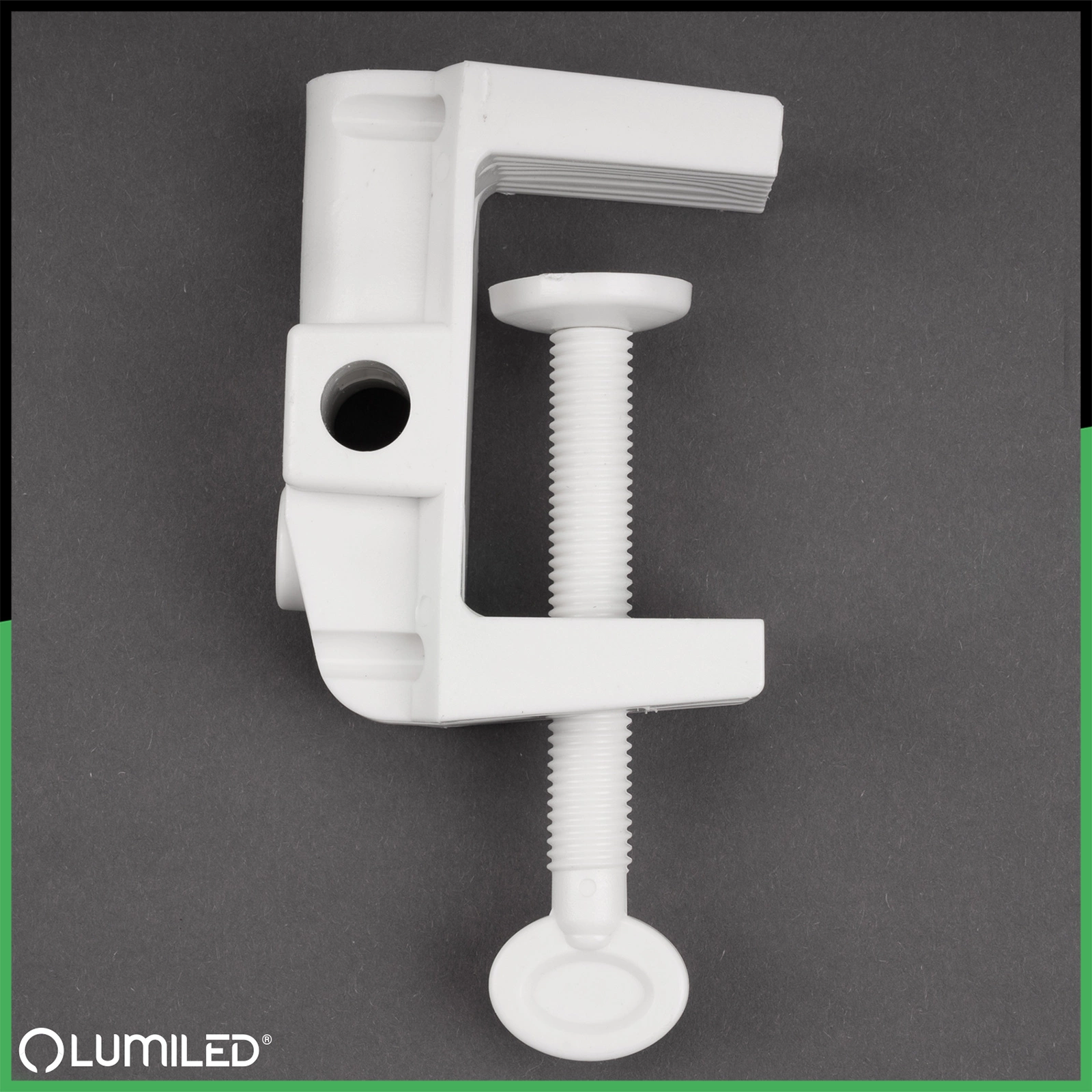 Držiak stolovej lampy Lumiled je praktické riešenie, ktoré umožňuje bezpečné upevnenie lampy na doske stola, na stole alebo na polici. Vďaka robustnej svorke budete môcť lampu bezpečne a spoľahlivo uchytiť bez rizika, že sa pohne alebo prevrhne. Vďaka univerzálnemu dizajnu je držiak vhodný pre väčšinu modelov stolných lámp a elegantná biela farba dokonale zapadne do každého interiéru. Je to príslušenstvo, ktoré zvyšuje funkčnosť vašej lampy a šetrí miesto na stolovej doske.