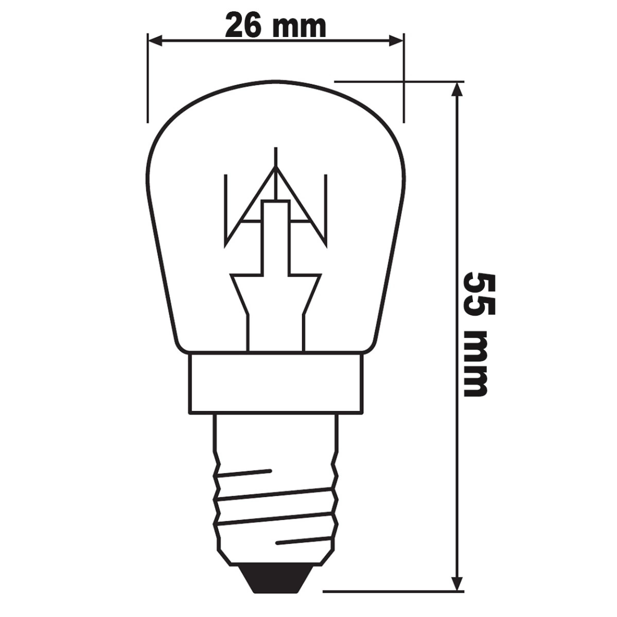 Żarówka T26 z serii SPECIAL renomowanej i uznanej w branży oświetleniowej firmy OSRAM z trzonkiem E14 i mocy 15W. Żarówka o wysokiej trwałości (1000 godzin), emituje ciepłą barwę światła o temperaturze barwowej 2700K. Żarówka przystosowana tylko do zastosowań specjalnych jako oświetlenie wewnętrzne lodówki lub maszyn szwalniczych.