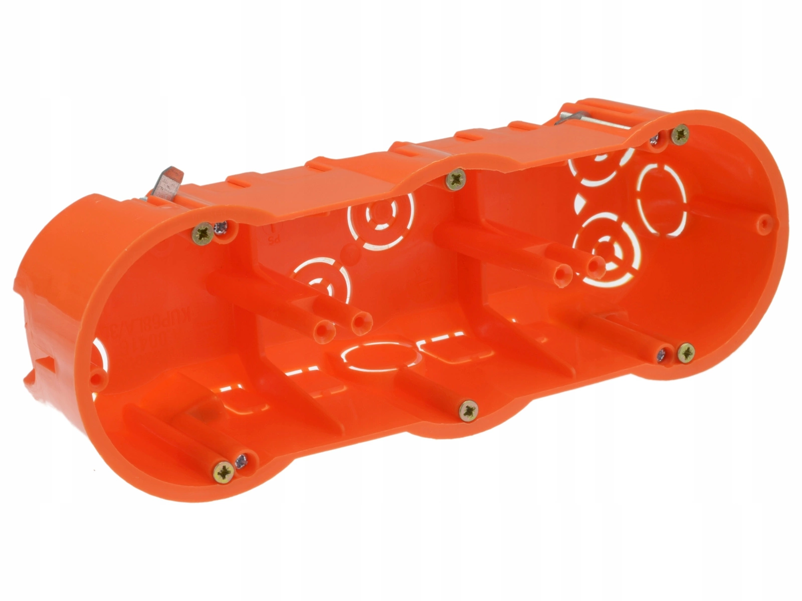 - Puszka posiada wkręty — ułatwiające montaż w płycie karton-gips.