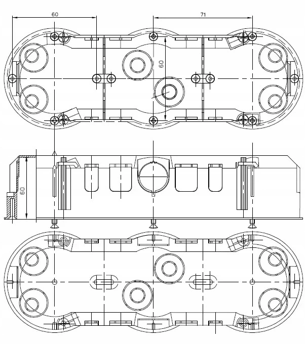 - Puszka posiada łatwe do wybicia przepusty, które pozwalają na wprowadzenie przewodów.