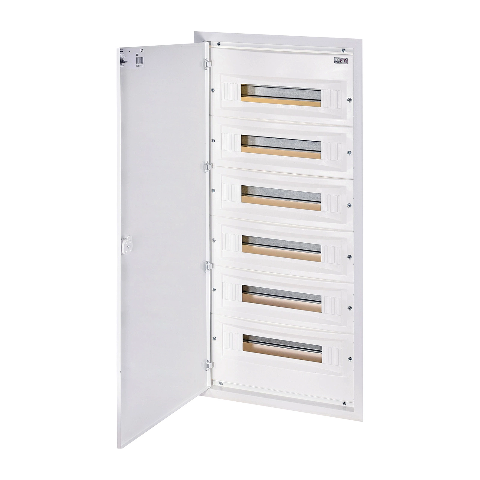 Rozdzielnica podtynkowa wykonana z wysokiej jakości tworzywa sztucznego z metalowymi drzwiami mająca zastosowanie w budownictwie mieszkaniowym i przemysłowym do montażu aparatury modułowej.