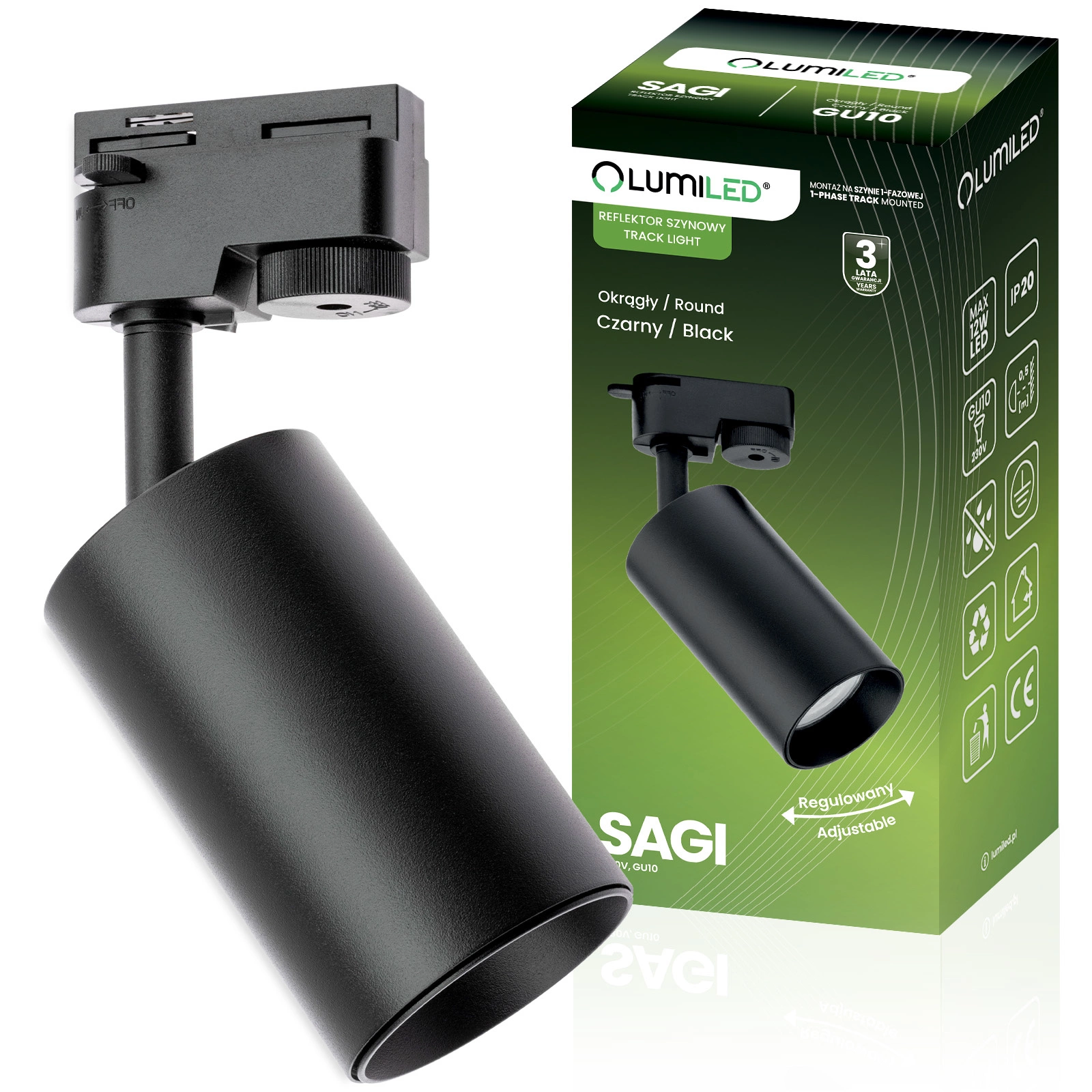 Čierny reflektor na koľajničku od spoločnosti LUMILED je kombináciou elegancie a funkčnosti - je vyrobený z odolného hliníka a zaručuje dlhodobú spoľahlivosť. Vďaka jednofázovej montáži na koľajnicu môžete ľahko prispôsobiť rozloženie svetla meniacim sa potrebám interiéru. Pohodlné, flexibilné a štýlové riešenie pre každú modernú miestnosť.
