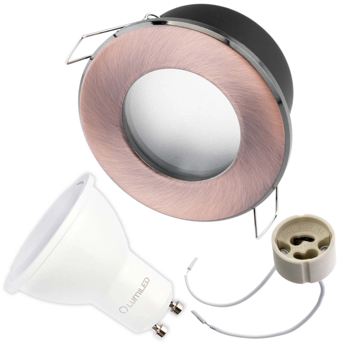 Zestaw Oprawa Halogenowa Hermetyczna Łazienkowa PODBITKA AQUS Miedź IP44 + LED GU10 5W 4000K Lumiled