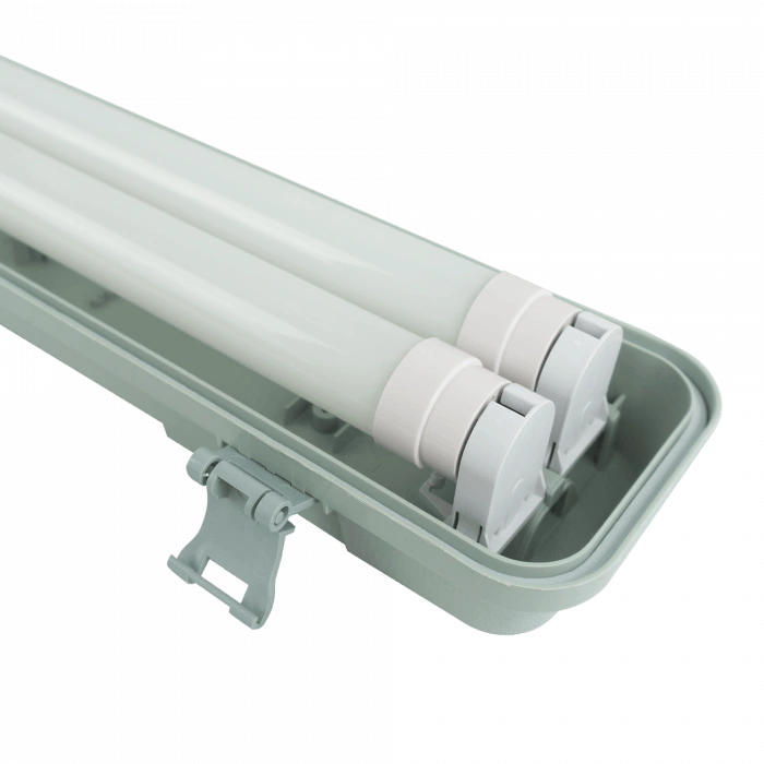 Hermetické svietidlo bolo navrhnuté s ohľadom na trvanlivosť a účinnosť, má vysoké krytie IP65, vďaka čomu je odolné voči prachu a vlhkosti. LED trubice s výkonom 36 W majú pôsobivú svetelnú účinnosť 100 lm/W, čo znamená nízku spotrebu energie. Celková konštrukcia je vyrobená z najkvalitnejších materiálov, ako je polyvinylchlorid a polystyrén, čo zaručuje odolnosť a estetiku. Vďaka jednoduchej povrchovej montáži a vymeniteľným svetelným zdrojom bude táto súprava ideálna do akéhokoľvek náročného prostredia.