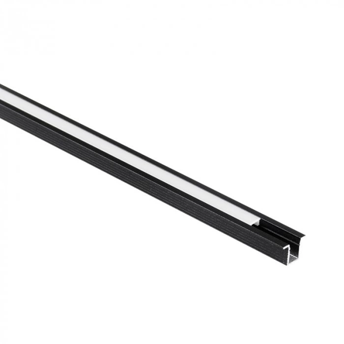 Hliníkový zapustený LED profil Black 1m s tienidlom z mliečneho skla pre LED pásy + krytky Ecolight PW series