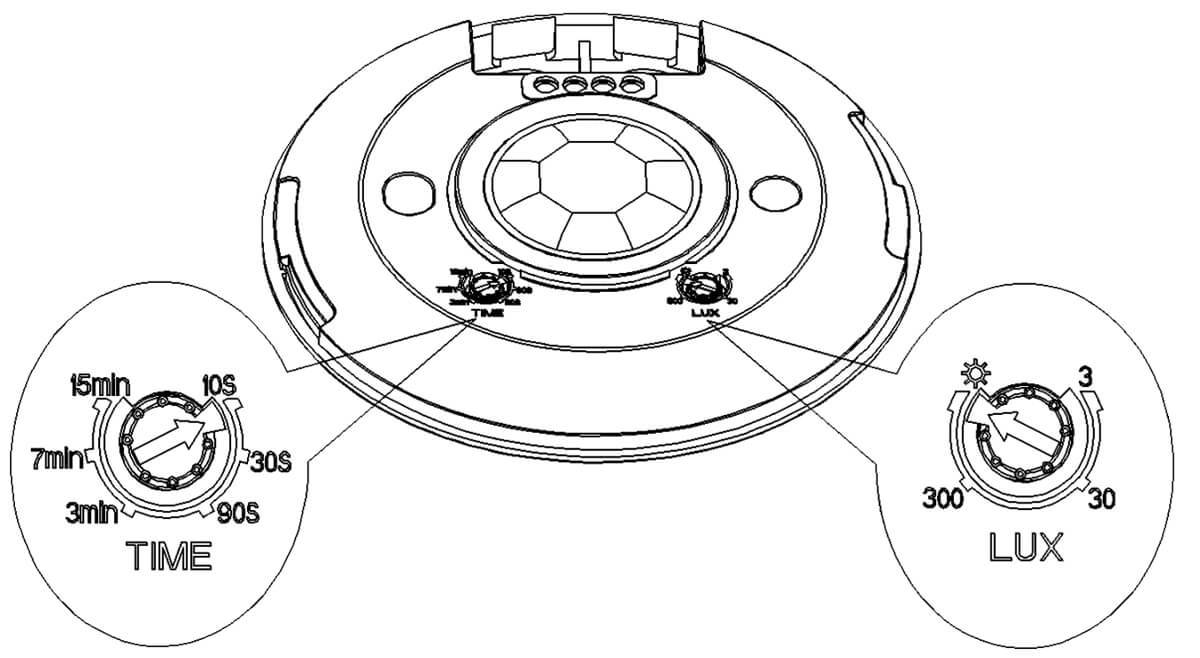 - detektor ruchu z dwoma zakresami regulacji: czas działania i natężenie oświetlenia,