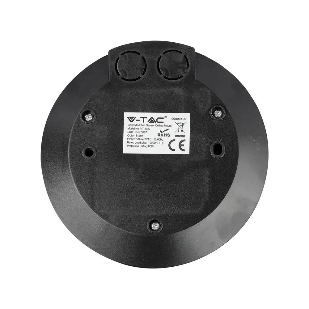 Czujnik Ruchu na podczerwień PIR 360° IP20 CZARNY Natynkowy Sufitowy Ścienny Nastawny V-TAC