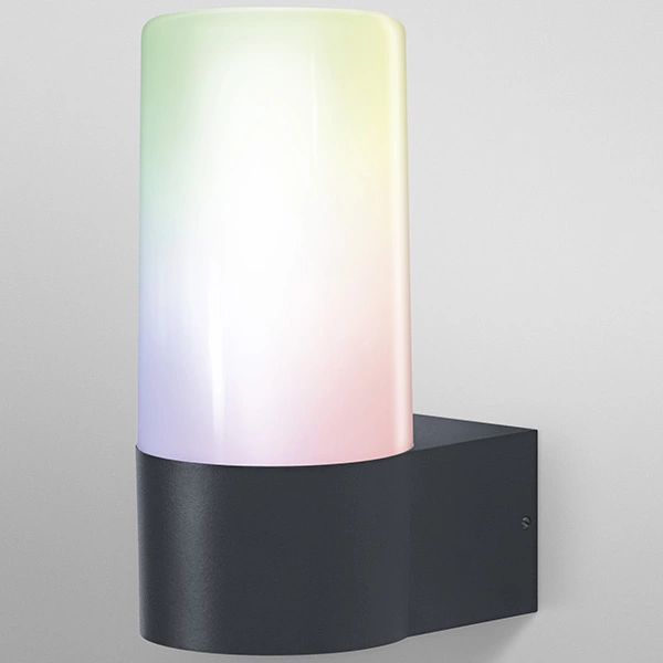 Objavte moderný inteligentný nástenný svietnik, ktorý spája funkčnosť a štýl. 10W LED žiarovka poskytuje svetelný tok 380 lm, takže je ideálna na vonkajšie osvetlenie. Možnosť nastavenia farby svetla od teplej bielej až po viacfarebnú (RGB) a funkcia stmievania vám umožní vytvoriť dokonalú atmosféru. Vysokokvalitný materiál sivý hliník zaručuje odolnosť a eleganciu výrobku.