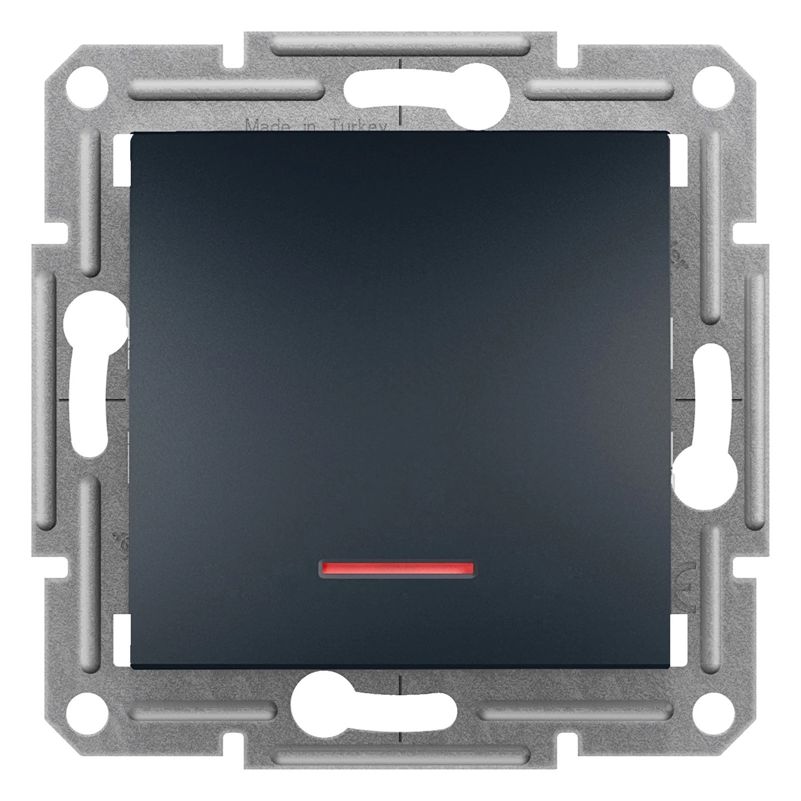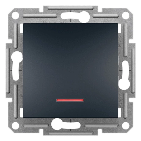 Standardowy włącznik pojedynczy, jednobiegunowy marki Schneider Electric z serii Asfora. Stosowany w pomieszczeniach jako łącznik oświetlenia. Za pomocą ramek ściśle przylega do ściany, wygięty wraca do kształtu pierwotnego, a także chroni przed porażeniem. Podświetlenie łącznika może być praktycznym i dekoracyjnym dodatkiem. Może ułatwiać lokalizację łącznika w ciemności lub po prostu pełnić funkcję dekoracyjną.