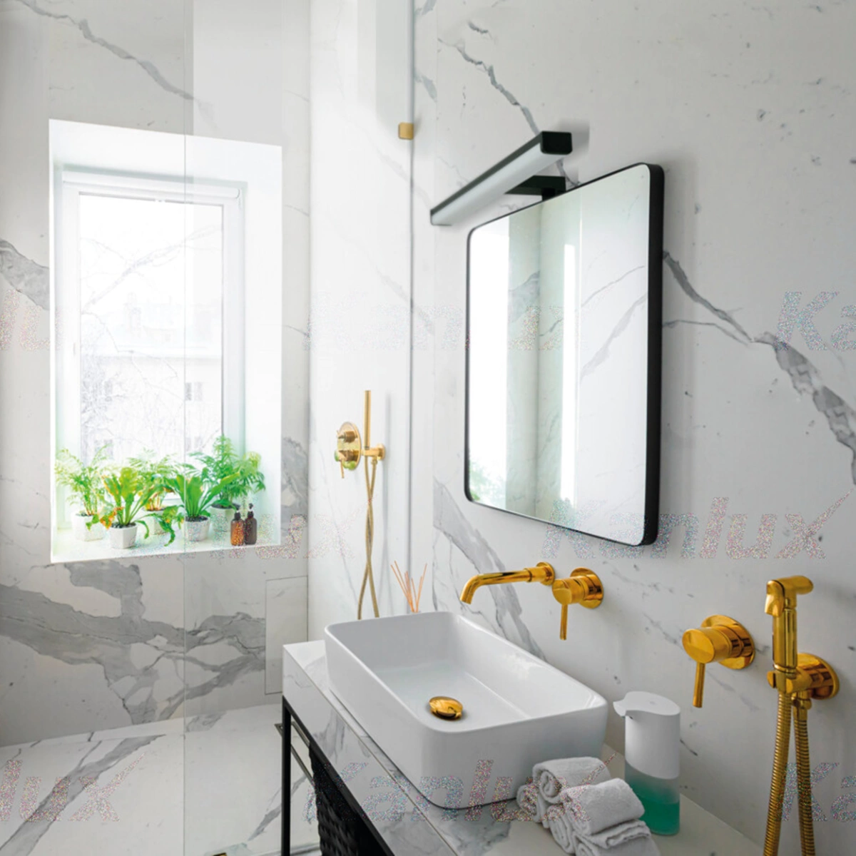 Dvojfarebný čierny dizajn a obdĺžnikový tvar svietidla vyrobeného z vysokokvalitného hliníka dobre ladí s moderným dizajnom interiéru. Vďaka stupňu krytia IP44 je svietidlo odolné voči vlhkosti, takže je ideálne na použitie v každej kúpeľni. Ľahko sa inštaluje a je určené na použitie v interiéri, poskytuje komfort na dlhé roky, má životnosť až 25 000 hodín a počet vypínacích cyklov 15 000.