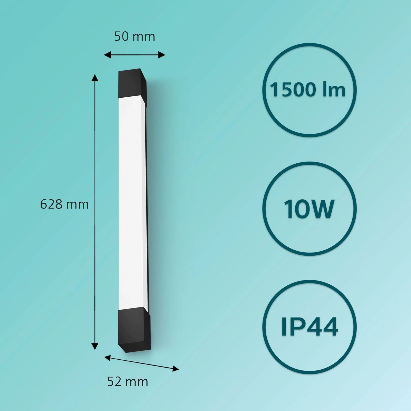 Objavte modernú eleganciu so svietidlom LED nad zrkadlo od spoločnosti Philips. Model Rover má výkon 10 W a pôsobivý svetelný tok 1 500 lúmenov, takže je ideálny na osvetlenie vašej kúpeľne alebo chodby. Vďaka farebnej teplote 2700 K vyžaruje lampa teplé, príjemné svetlo, ktoré dokonale zapadne do každého moderného štýlu interiéru. Vďaka elegantnému čiernemu puzdru a dĺžke 62 cm je nielen funkčným, ale aj štýlovým doplnkom vášho priestoru. Lampa Rover má stupeň krytia IP44, takže je ideálnou voľbou do miestností vystavených vlhkosti. Je navrhnutá tak, aby poskytovala výkon počas dlhého obdobia, so životnosťou až 25 000 hodín a až 50 000 spínacích cyklov. Vysoká kvalita vyhotovenia výrobku zaručuje užívateľský komfort a energetickú účinnosť. Urobte rozumnú voľbu a vyberte si svietidlo LED Rover over mirror, ktoré spája dokonalosť svetelnej technológie s estetikou moderného dizajnu.