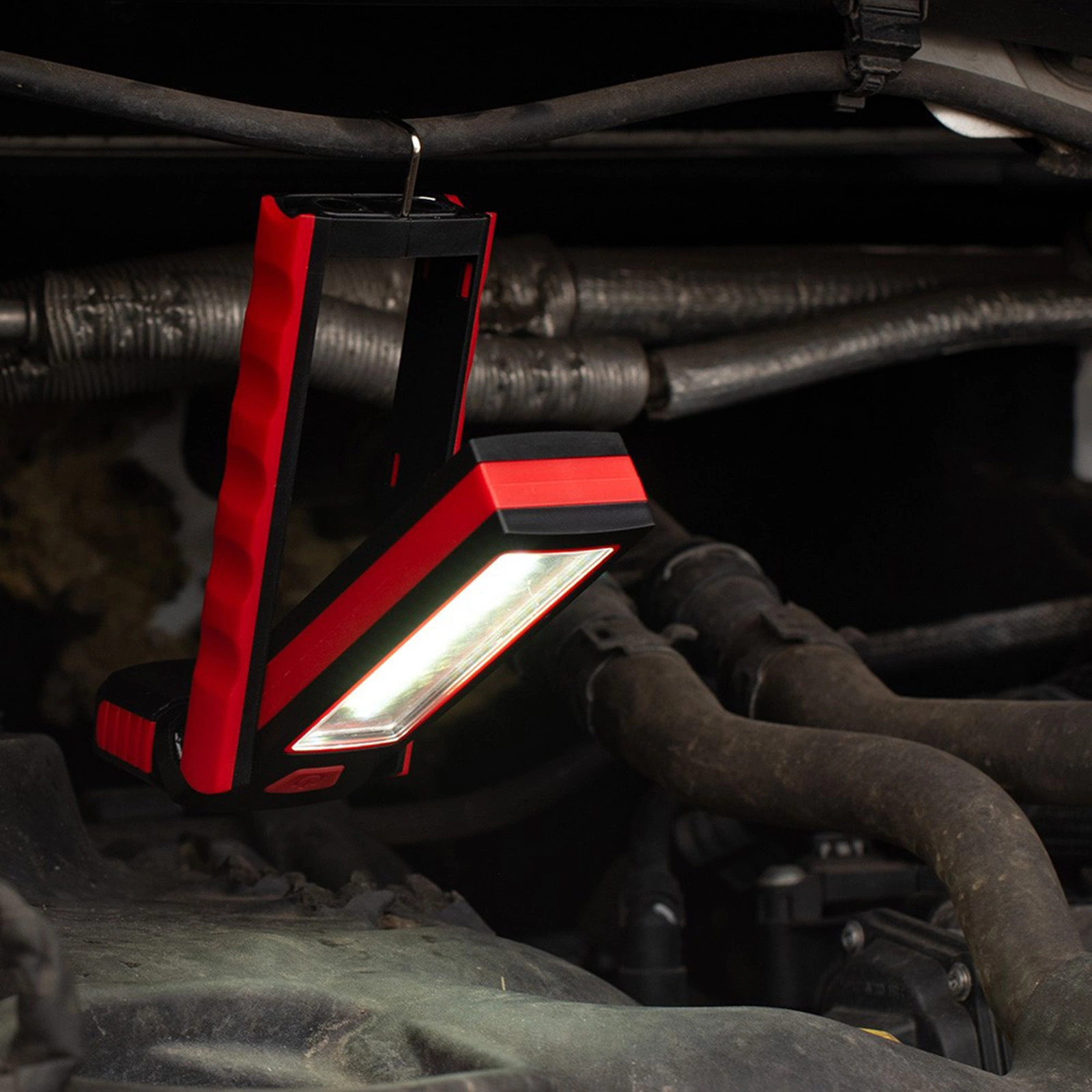 Cztery wbudowane magnesy umożliwiają pewne i stabilne przymocowanie latarki do metalowych powierzchni. Dzięki temu można łatwo ustawić źródło światła w dogodnej pozycji bez potrzeby trzymania latarki w ręku. Latarka posiada dwa rodzaje oświetlenia: boczny LED COB 3W oraz czołowy LED 1W. Dzięki temu można korzystać zarówno ze światła skupionego, jak i rozproszonego, co zapewnia wszechstronność w różnych sytuacjach roboczych.
