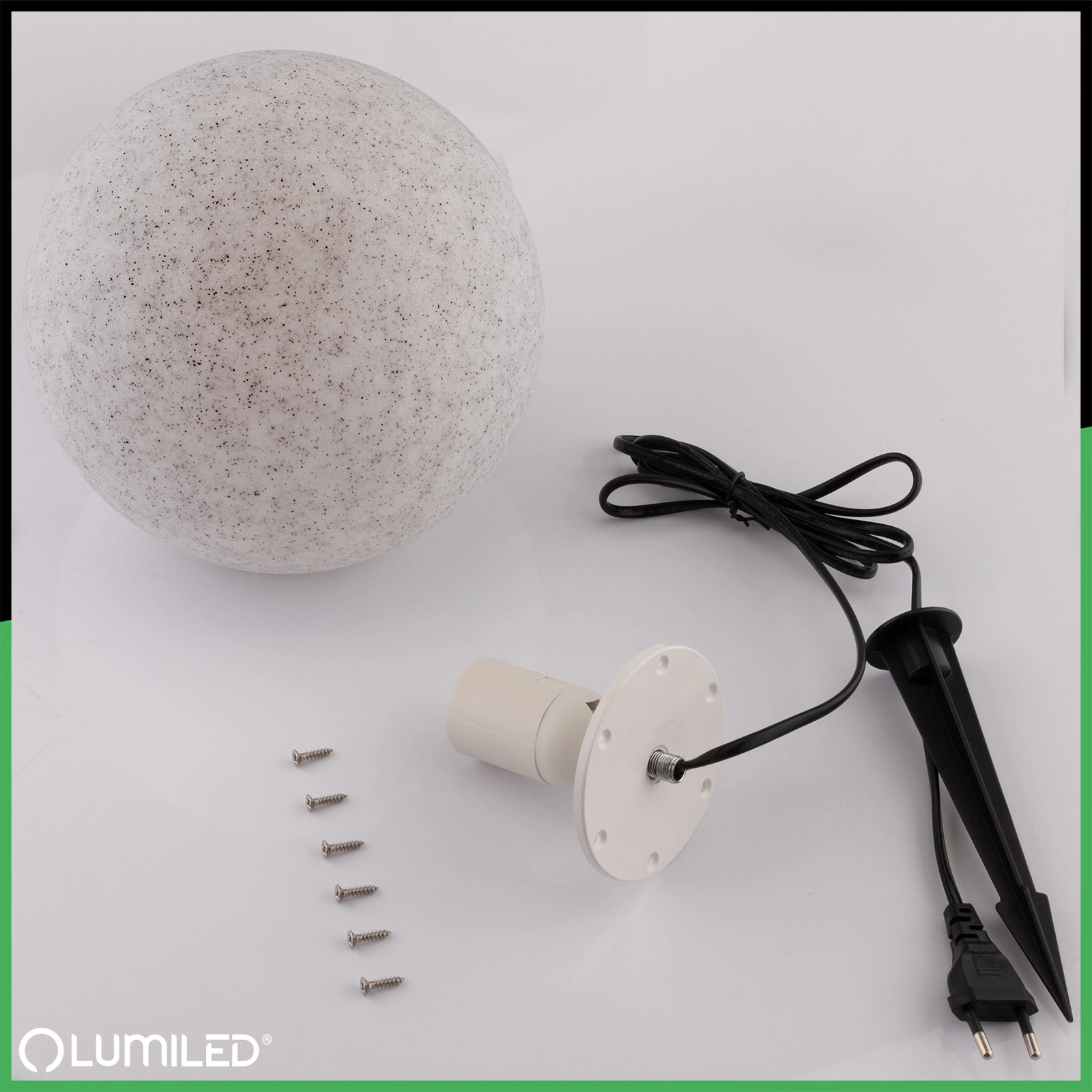 Lampa je vyrobená z odolného polykarbonátu, ktorý je odolný voči žltnutiu a starnutiu pri vystavení svetlu. Vďaka tomu si dlho zachováva svoj estetický vzhľad bez potreby ďalšej starostlivosti. Vďaka hladkému povrchu sa ľahko čistí - stačí ju utrieť, aby vyzerala opäť ako nová. Vďaka elegantnému guľovitému tvaru a povrchovej úprave inšpirovanej prírodným kameňom má svietidlo aj dekoratívnu funkciu. Je to praktické a estetické riešenie, ktoré sa hodí do moderných aj klasických záhradných úprav.