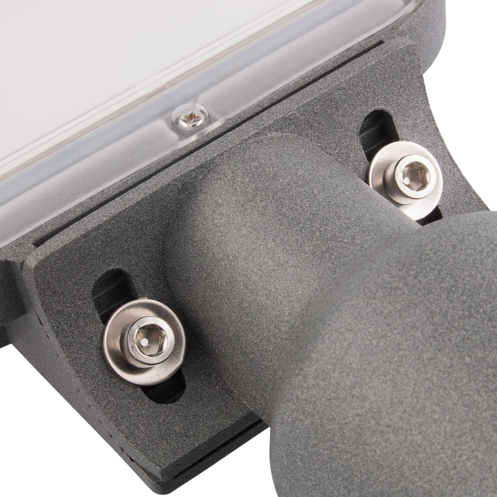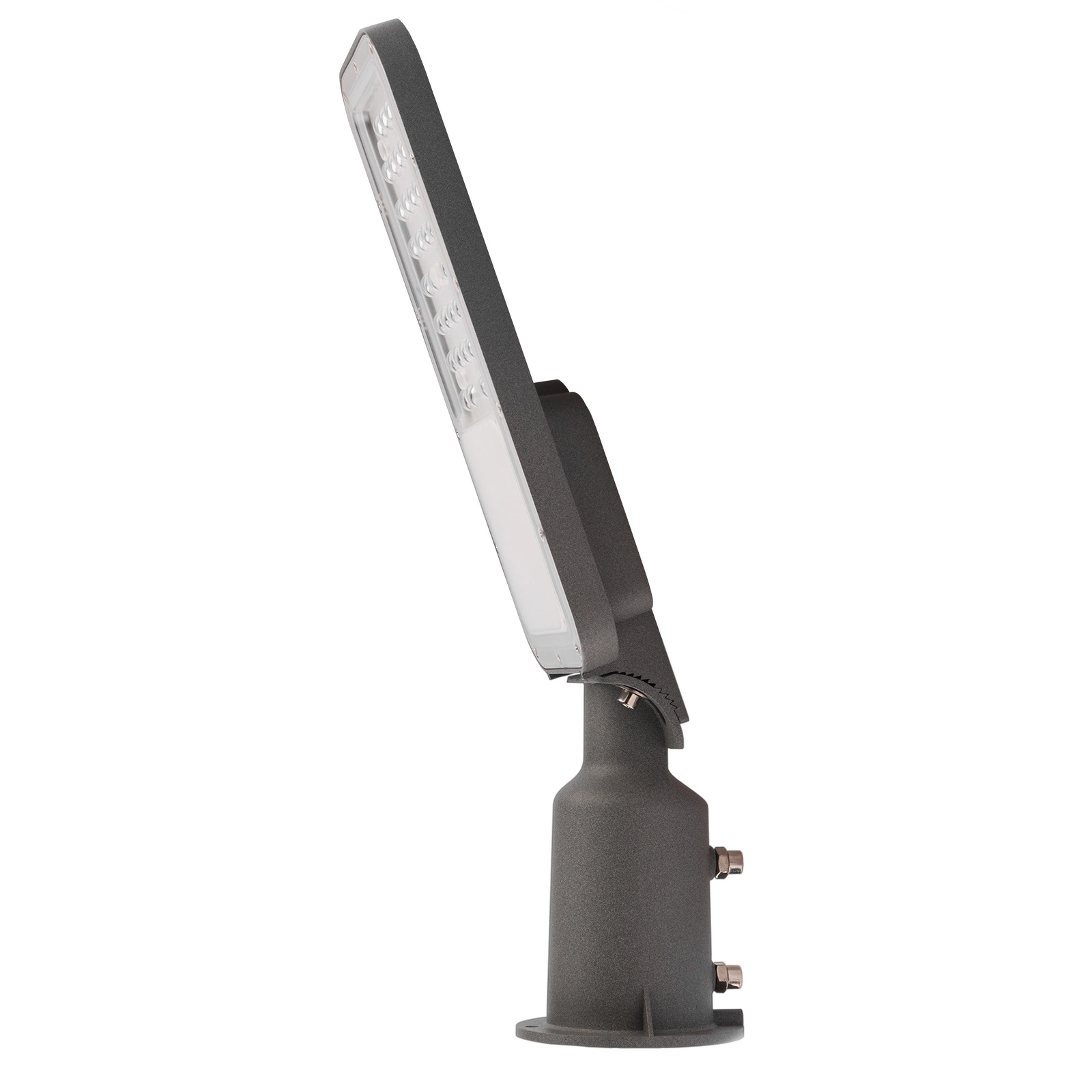 Toto pouličné svietidlo LED je vybavené nastaviteľnou montážnou konzolou, ktorá umožňuje presné nastavenie uhla osvetlenia a prispôsobenie osvetlenia individuálnym potrebám používateľa. Vďaka robustnej konštrukcii a pohyblivej hlavici možno svietidlo ľahko prispôsobiť rôznym montážnym podmienkam, čím sa zabezpečí optimálna viditeľnosť a energetická účinnosť.