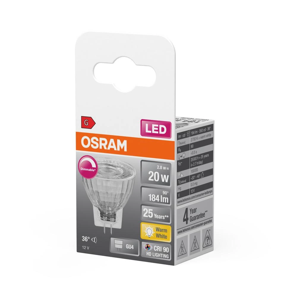 LED MR11 reflektor GU4 2.8W = 20W 184lm 2700K, teplá biela CRI90 12V 36° stmievateľný SUPERSTAR Osram