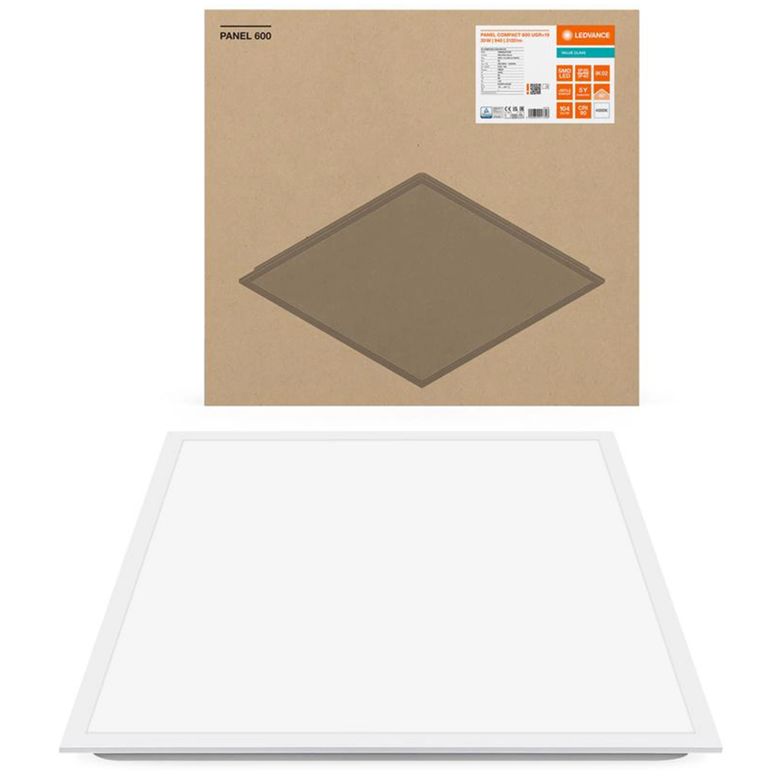 30W panel LED kancelárskeho svietidla je dokonalým riešením pre moderné kancelárske interiéry. So svetelným tokom 3120 lm a svetelnou účinnosťou 104 lm/W poskytuje optimálne osvetlenie pre pracovné priestory, ktoré vyžadujú presnú a prirodzenú farbu svetla 4000 K. Integrovaný zdroj LED a index podania farieb 90 Ra zaručujú príjemné a pohodlné svetlo bez oslnenia(UGR19).