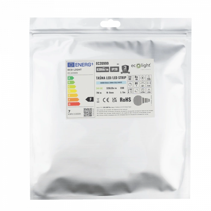 Objavte nový rozmer osvetlenia s našou revolučnou LED páskou. S výkonom 7 W/m a svetelným tokom 630 lm/m ponúka pásik COB výnimočne živé a jasné svetlo, ideálne na vytvorenie jedinečnej atmosféry vo vašom dome. S neutrálnou farbou svetla 4000 K dosiahnete efekt, ktorý sa dokonale hodí do každého interiéru, od obývačky cez spálňu až po jedáleň. Vďaka integrovaným diódam LED s vysokou hustotou 320LED/m poskytuje naša páska rovnomerné osvetlenie bez blikania.