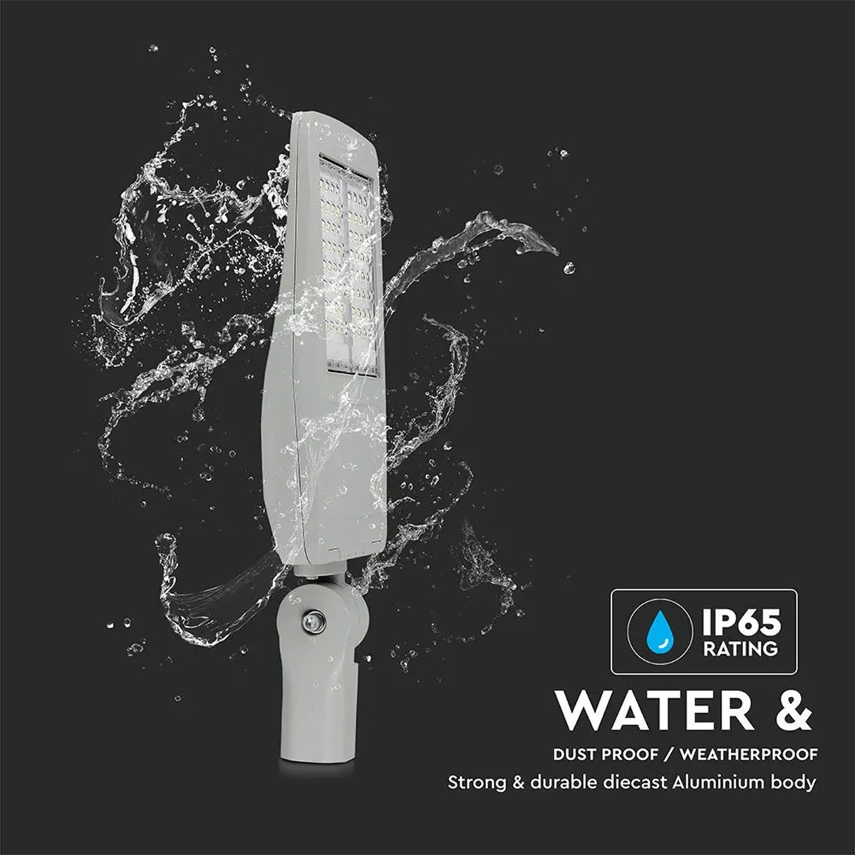 Produkt ten przystosowany jest do pracy nawet w ekstremalnych warunkach. Dzięki wysokiej szczelności - IP65 nie musimy obawiać się o lampę nawet, gdy pada deszcz. Lampa uliczna jest całkowicie wodoszczelna.