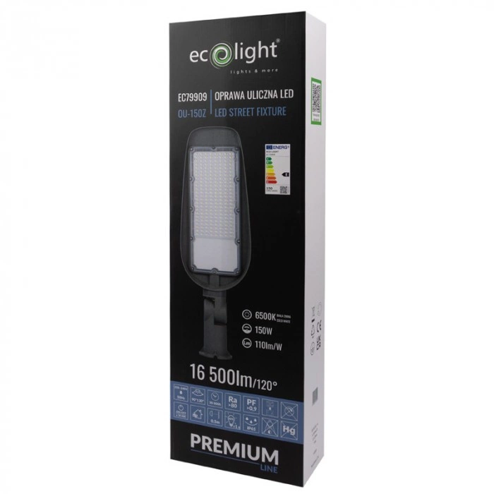 150W pouličná lampa LED je mimoriadne účinné riešenie vonkajšieho osvetlenia. So svetelným tokom 16500 lm a svetelnou účinnosťou 110 lm/W ponúka osvetlenie, ktoré funguje v rôznych podmienkach. Farba svetla 6500 K poskytuje chladné, ostré svetlo, ktoré dokonale osvetľuje ulice, chodníky a obchodné priestory. Inštalácia je jednoduchá vďaka štandardnému vstupnému napätiu 220-240 V AC. Svietidlo je vyrobené z robustného sivého hliníka a zaručuje dlhú životnosť a odolnosť voči nepriaznivým poveternostným podmienkam, o čom svedčí stupeň krytia IP65 a mechanická odolnosť IK08.