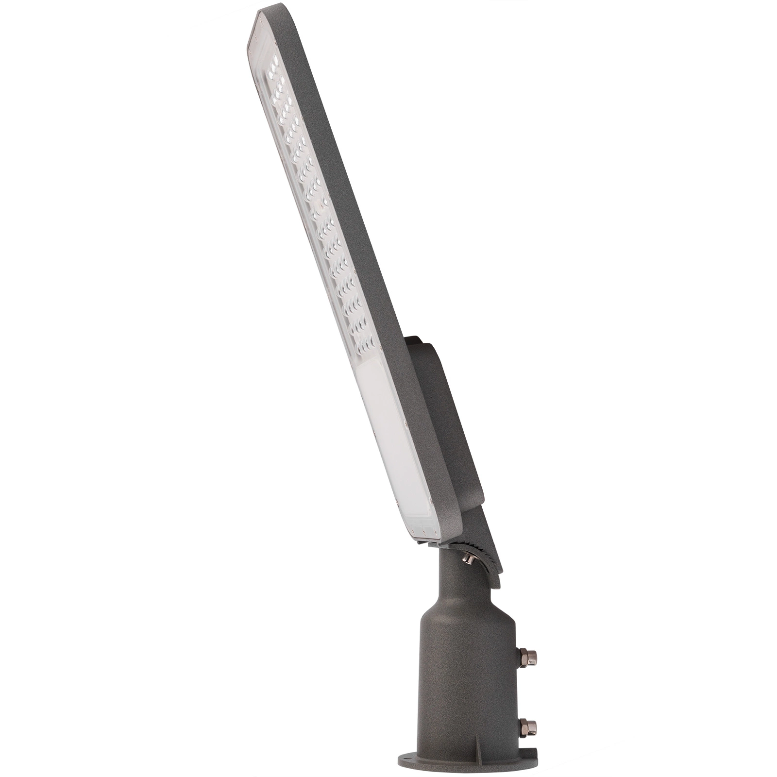 Toto pouličné svietidlo LED je vybavené nastaviteľnou montážnou konzolou, ktorá umožňuje presné nastavenie uhla osvetlenia a prispôsobenie osvetlenia individuálnym potrebám používateľa. Vďaka robustnej konštrukcii a pohyblivej hlavici možno svietidlo ľahko prispôsobiť rôznym montážnym podmienkam, čím sa zabezpečí optimálna viditeľnosť a energetická účinnosť.