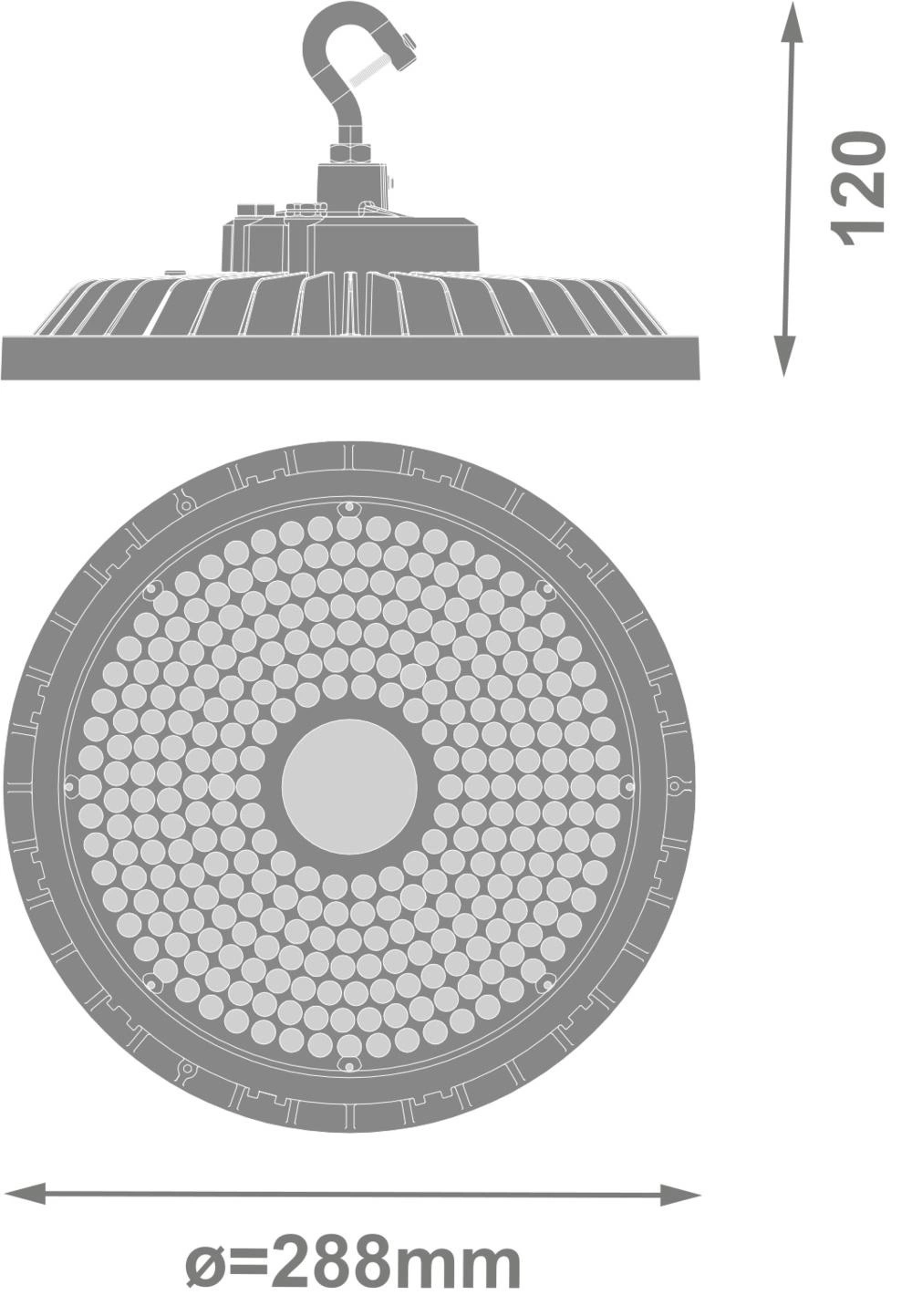 Predstavujeme vám moderné 195W priemyselné svietidlo LED s pôsobivým svetelným výkonom 34300 lm. Jeho robustná hliníková konštrukcia v elegantnej čiernej farbe, navrhnutá pre náročné priemyselné prostredie, zaručuje odolnosť a ochranu so stupňom krytia IP66 a odolnosťou proti nárazom IK10. Uhol rozloženia svetla je 60° a studená biela farba 5700 K dokonale osvetlí každý interiér.