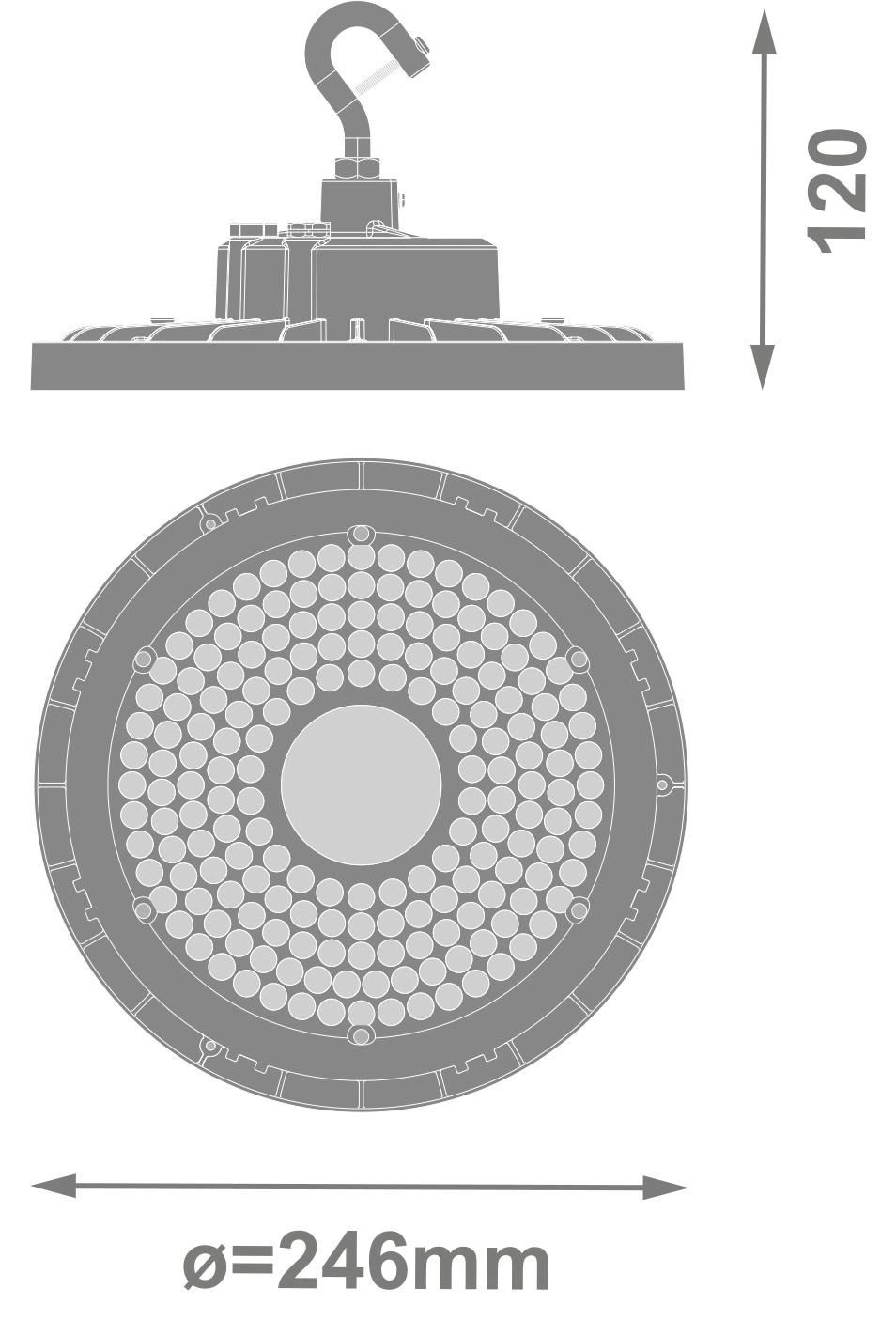 Svietidlo je vyrobené z odolného hliníka a ponúka flexibilnú montáž, ktorá umožňuje povrchovú aj závesnú inštaláciu. Pokročilá technológia zaručuje životnosť až 100 000 hodín, čím sa minimalizuje potreba častej údržby. Vysoký účinník 0,95 a sieťové napájanie 220-240 V zabezpečujú stabilnú prevádzku. Výrobok spĺňa požiadavky normy CE a ponúka spoľahlivosť a energetickú účinnosť v kategórii profesionálneho priemyselného osvetlenia.