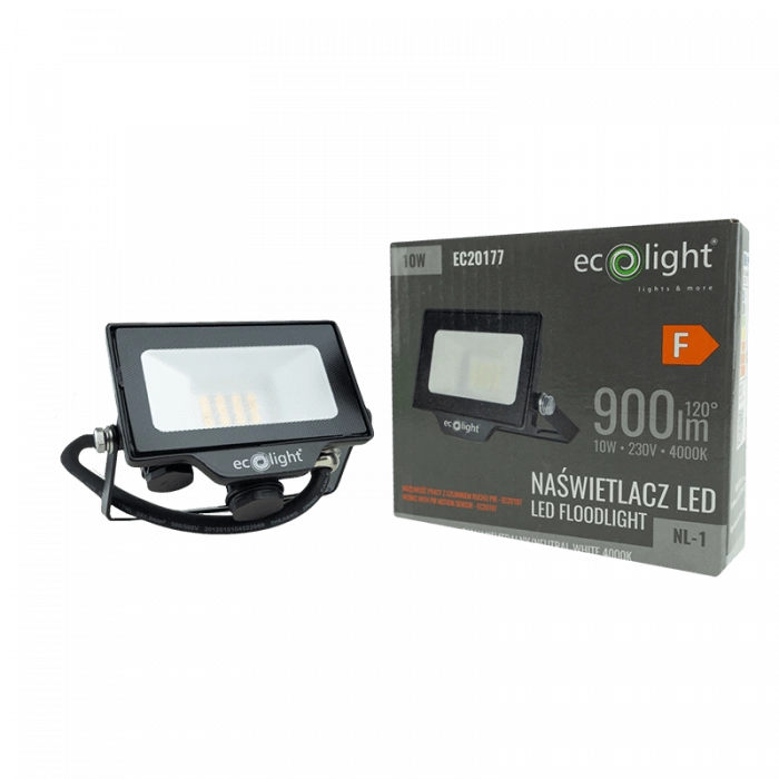 LED reflektor Ecolight 10W 900lm 4000K Neutral IP65 NL-1 je dokonalým riešením pre efektívne a trvanlivé osvetlenie vonkajších priestorov. Tento moderný 10W reflektor poskytuje jas 900 lúmenov, takže je ideálny na osvetlenie veľkých plôch, ako aj jednotlivých zón. S farebnou teplotou 4000 K vytvára príjemné, neutrálne biele svetlo, ktoré je vhodné na rôzne vonkajšie aplikácie.