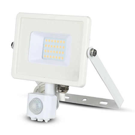 LED reflektor 20W 1600lm 3000K IP65 biely so senzorom pohybu a funkciou CUT-OFF Samsung Chip VT-20-S-W V-TAC
