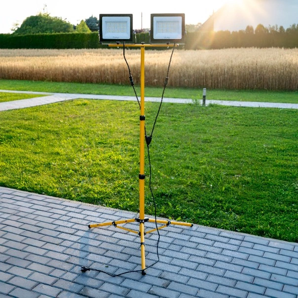Lampy, naświetlacze zostały wyposażone w energooszczędne źródło światła LED o mocy 100W (KAŻDY). Emitują one światło o silnej neutralnej barwie światła, o temperaturze barwowej 4000K, co pozwala uzyskać strumień świetlny na poziomie aż 18000lm. To oznacza, że te lampy są w stanie oświetlić dużą przestrzeń, co czyni je idealnym wyborem do oświetlenia różnych pomieszczeń.