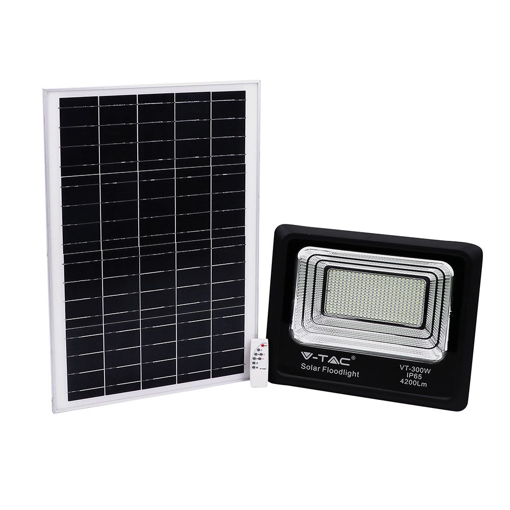LED reflektor 50W 6000K IP65 + solárny panel s diaľkovým ovládaním VT-300W V-TAC
