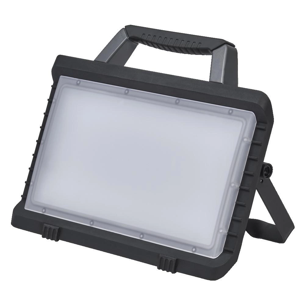 Reflektor má robustnú plastovú konštrukciu a vysoké krytie IP54 a IK06, vďaka čomu je odolný voči prachu a vode. Lítium-iónové napájanie pri 13 V, ako aj možnosť stmievania prostredníctvom ovládača zvyšujú funkčnosť zariadenia. Čas spustenia je len 0,5 sekundy a životnosť dosahuje 15 000 hodín, čo zaručuje dlhodobé používanie aj v tých najnáročnejších podmienkach. Rozmery a dizajn umožňujú pohodlné premiestnenie a inštaláciu ako voľne stojaceho reflektora.