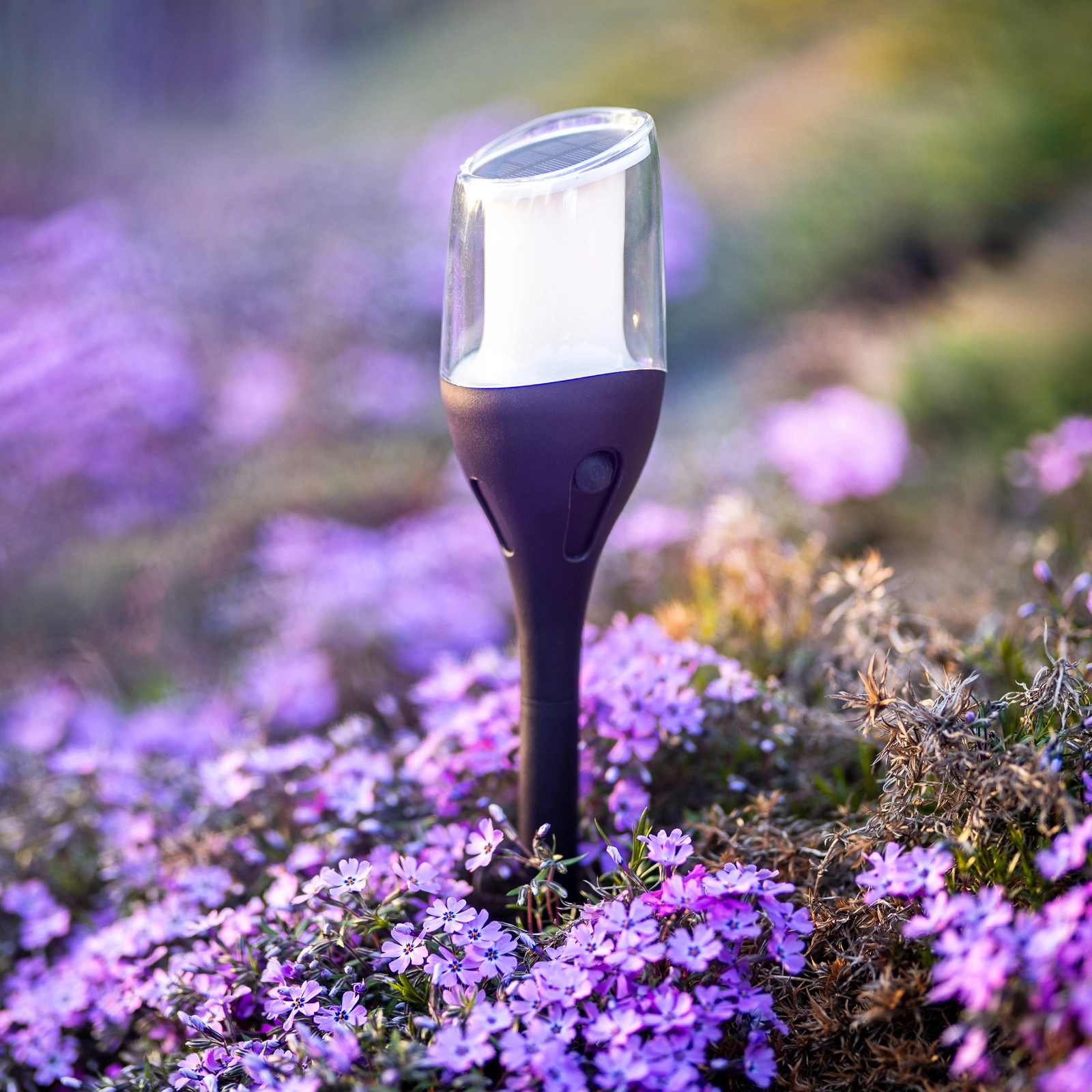 Baterka je vybavená amorfným solárnym panelom , takže sa účinne nabíja aj pri rozptýlenom dennom svetle a po zotmení poskytuje mäkké, neutrálne osvetlenie. Amorfná technológia sa vyznačuje vysokou energetickou účinnosťou, ktorá umožňuje efektívnu prevádzku aj pri slabom slnečnom svetle. Okrem toho sa tento typ panelu vyznačuje schopnosťou odolávať vysokým teplotám, čím sa minimalizuje pokles výkonu počas horúceho počasia. Lampa má 12 energeticky úsporných LED diód a 800 mAh batériu, čo zabezpečuje spoľahlivú prevádzku na dlhý čas. Ide o dokonalú kombináciu estetiky a ekonomickej efektívnosti.