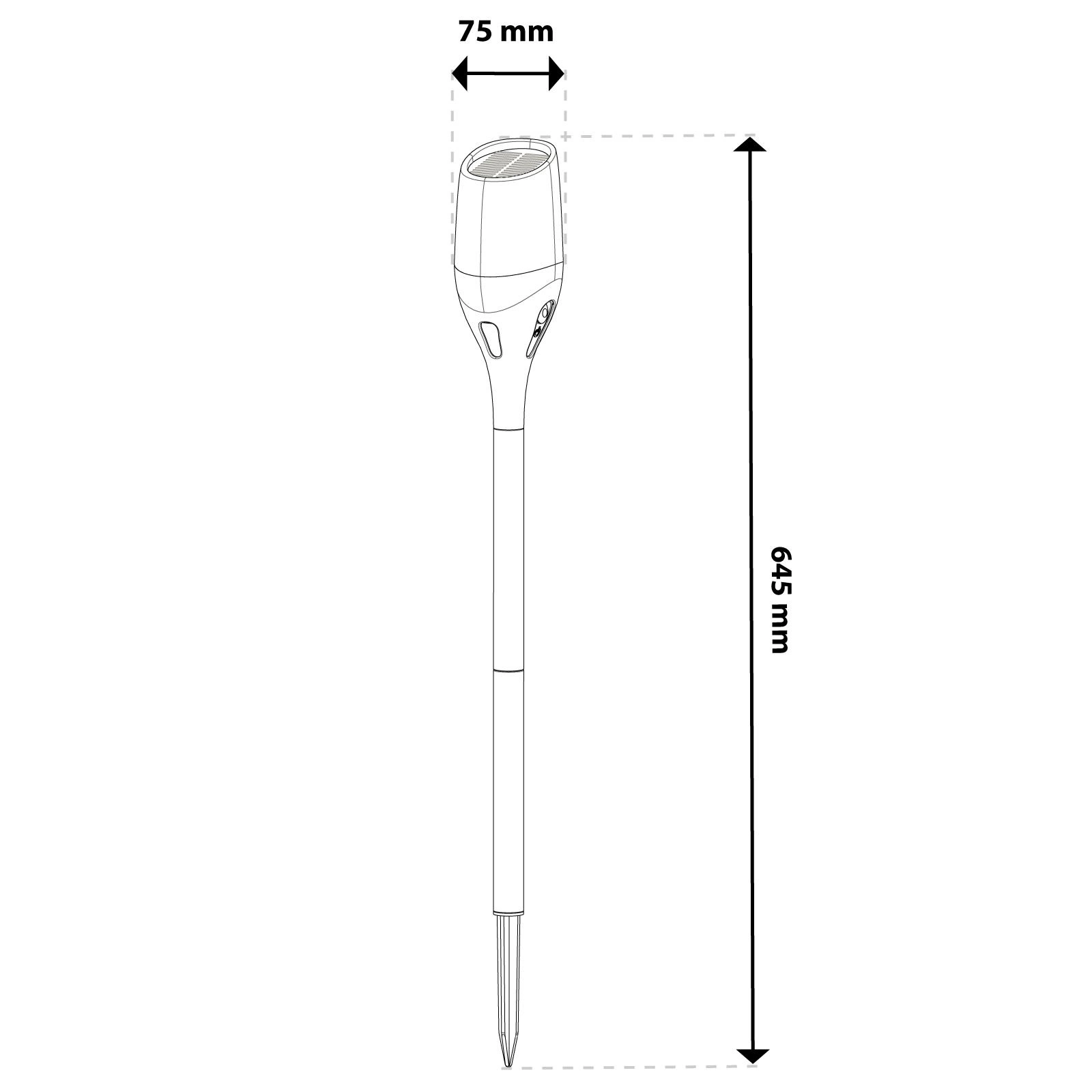 Svietidlo je vybavené účinnými LED diódami SMD , ktoré poskytujú vysokú svetelnú účinnosť a vynikajúcu kvalitu osvetlenia. Ich kompaktné rozmery umožňujú lepší odvod tepla, čo zvyšuje životnosť a spoľahlivosť osvetlenia. Vďaka štýlovému dizajnu pôsobí lampa výnimočne esteticky a teplé, jemné svetlo LED dokonale imituje plameň, čím poskytuje bezpečnú alternatívu skutočného ohňa. Solárna lampa s krytím IP65 je dokonalým riešením pre tých, ktorí hľadajú spoľahlivé a odolné vonkajšie osvetlenie. Vďaka tomu je výrobok úplne chránený proti vniknutiu prachu a odolný voči prúdom vody prichádzajúcim z akéhokoľvek smeru. Má tiež praktický vypínač, ktorý umožňuje manuálne ovládanie osvetlenia. Môžete sa tak jednoducho a rýchlo rozhodnúť, kedy sa má rozsvietiť, čo zvyšuje pohodlie používateľa a pomáha šetriť energiu.