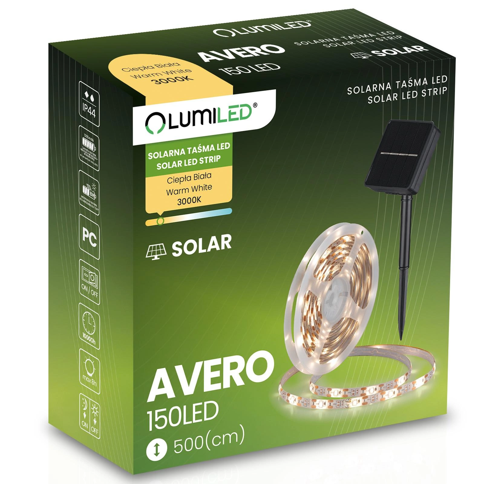 Solárny pás Avero od renomovanej značky Lumiled je oveľa viac než len zdroj svetla - je to spôsob, ako premeniť akýkoľvek vonkajší priestor na útulné a atmosférické miesto, kde chcete tráviť čas. Bol navrhnutý pre tých, ktorí si cenia kvalitu, estetiku a pohodlie. Je poháňané výlučne solárnou energiou, a preto nevyžaduje napájanie zo siete. Skvele sa hodí na miesta bez prístupu k elektrickej energii. Vyžarujúc teplú farbu svetla, pás vytvára útulnú atmosféru vo vonkajších priestoroch.
