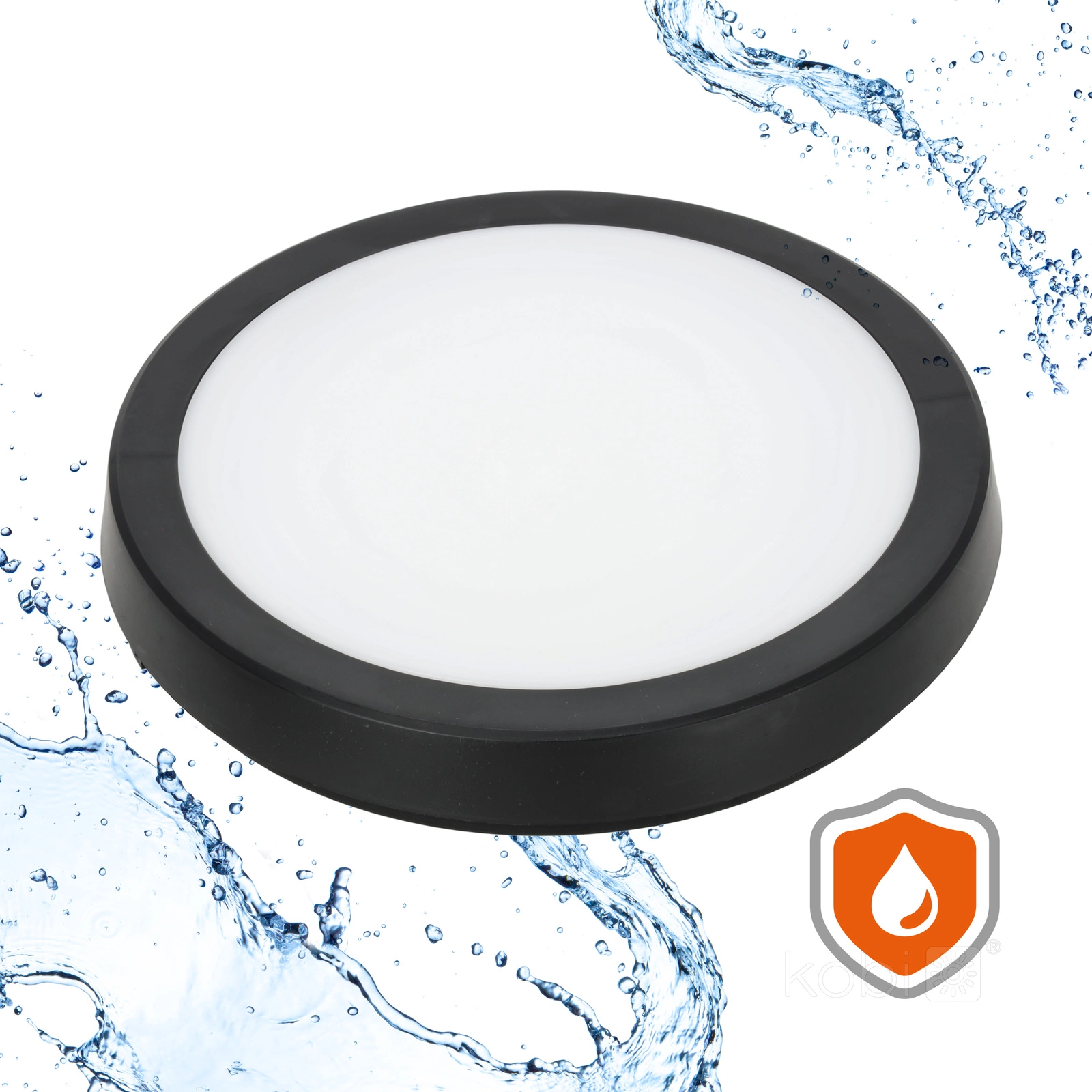 LED stropný plafón do kúpeľnepovrchovou montážou 24W 2280lm 4000K 120° so senzorom pohybu a súmraku čierny IP65 Nairos Kobi