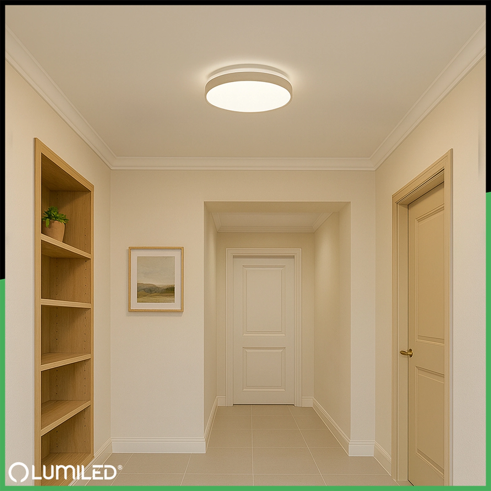 - Osvetlenie kúpeľne: Vďaka stupňu krytia IP44 je plafón CELIS ideálny do kúpeľní a iných miestností so zvýšenou vlhkosťou.