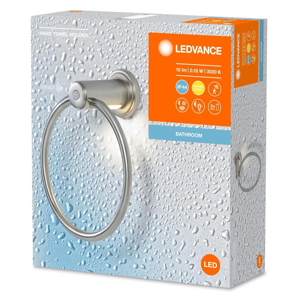 Predstavujeme vám elegantný držiak na uteráky integrovaný s najnovšou technológiou osvetlenia LED od spoločnosti Ledvance. Výrobok je vyrobený z vysokokvalitného plastu a hliníka a je nielen estetický, ale aj odolný. Energeticky úsporné LED osvetlenie s farebnou teplotou 3000 K poskytuje príjemnú teplú bielu farbu, ktorá je ideálna na vytvorenie relaxačnej atmosféry v kúpeľni.