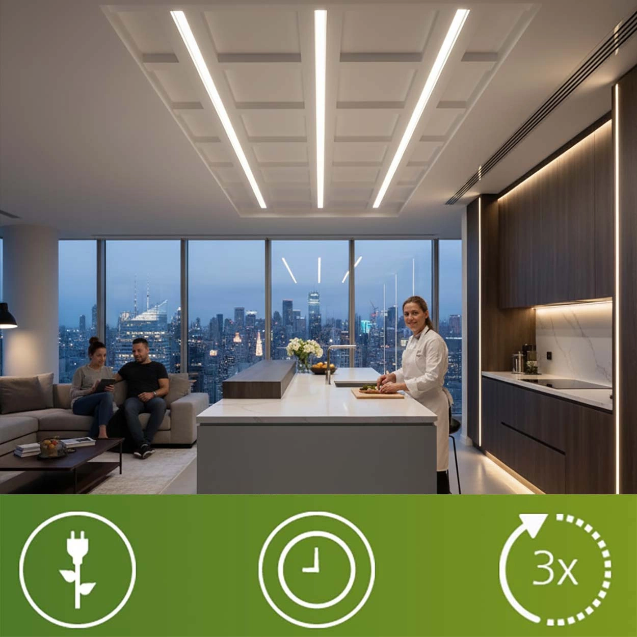 - 80% mniejsza zużycie energii w porównaniu do tradycyjnych lub halogenowych żródeł światła